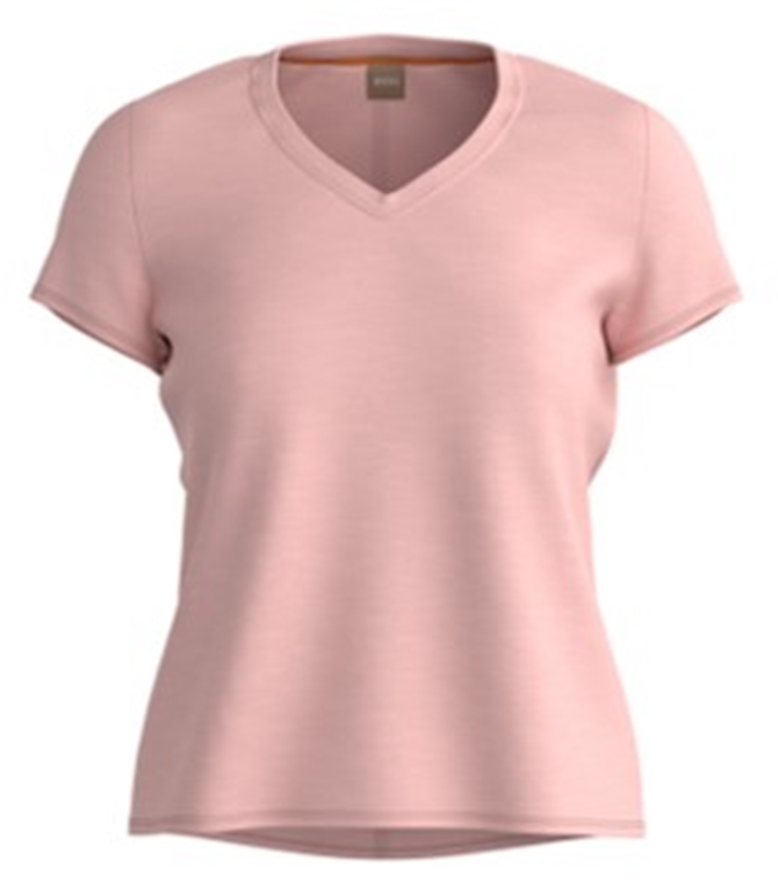 Boss T-Shirt C_Eslenza aus strukturierter Bio-Baumwolle mit V-Ausschnitt rosa 676