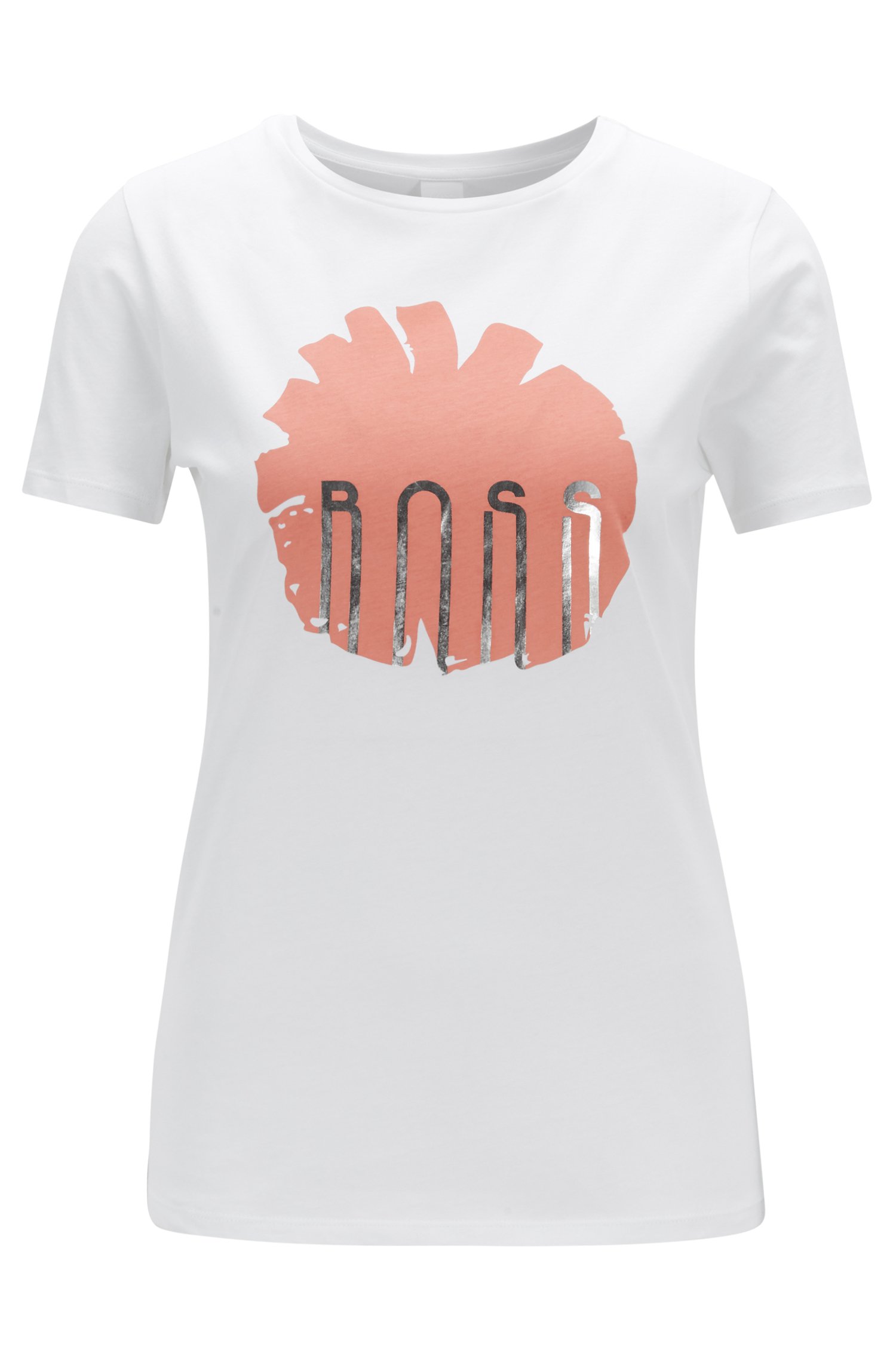 BOSS T-Shirt TEBLOSSOM aus Baumwolle mit Blumenprint und Folien-Detail weiss 100 S
