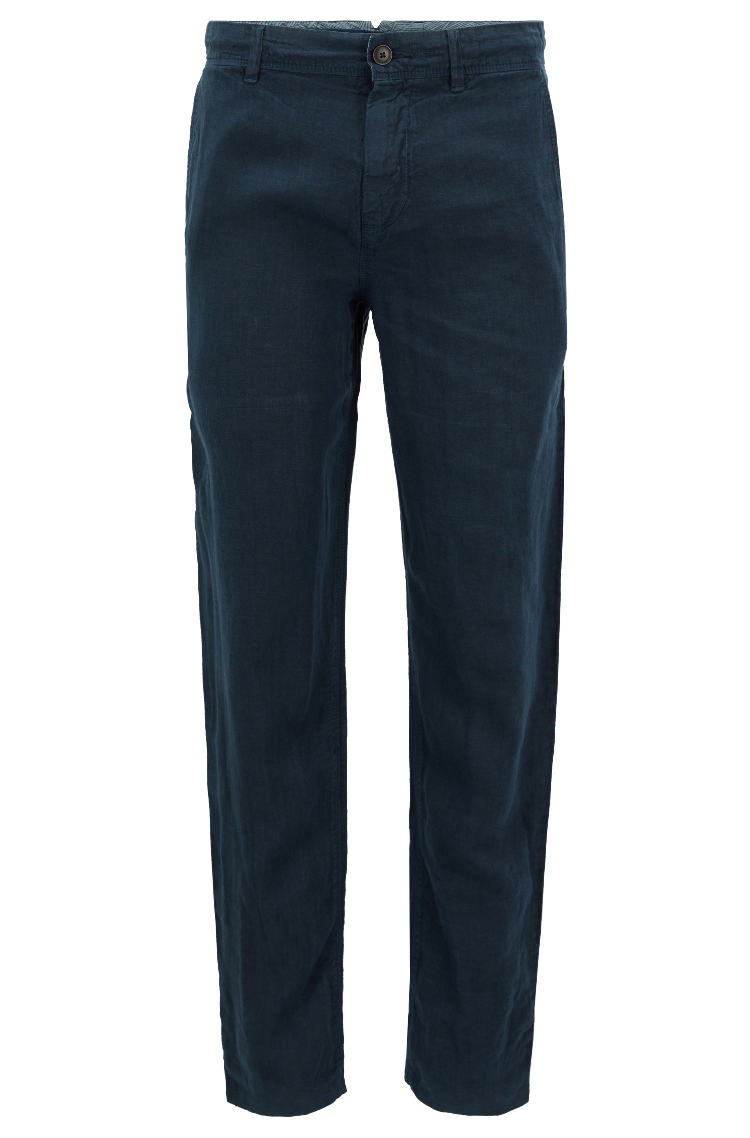 BOSS Tapered-Fit Hose Stapered4-D aus überfärbtem Leinen dunkelblau 404 46