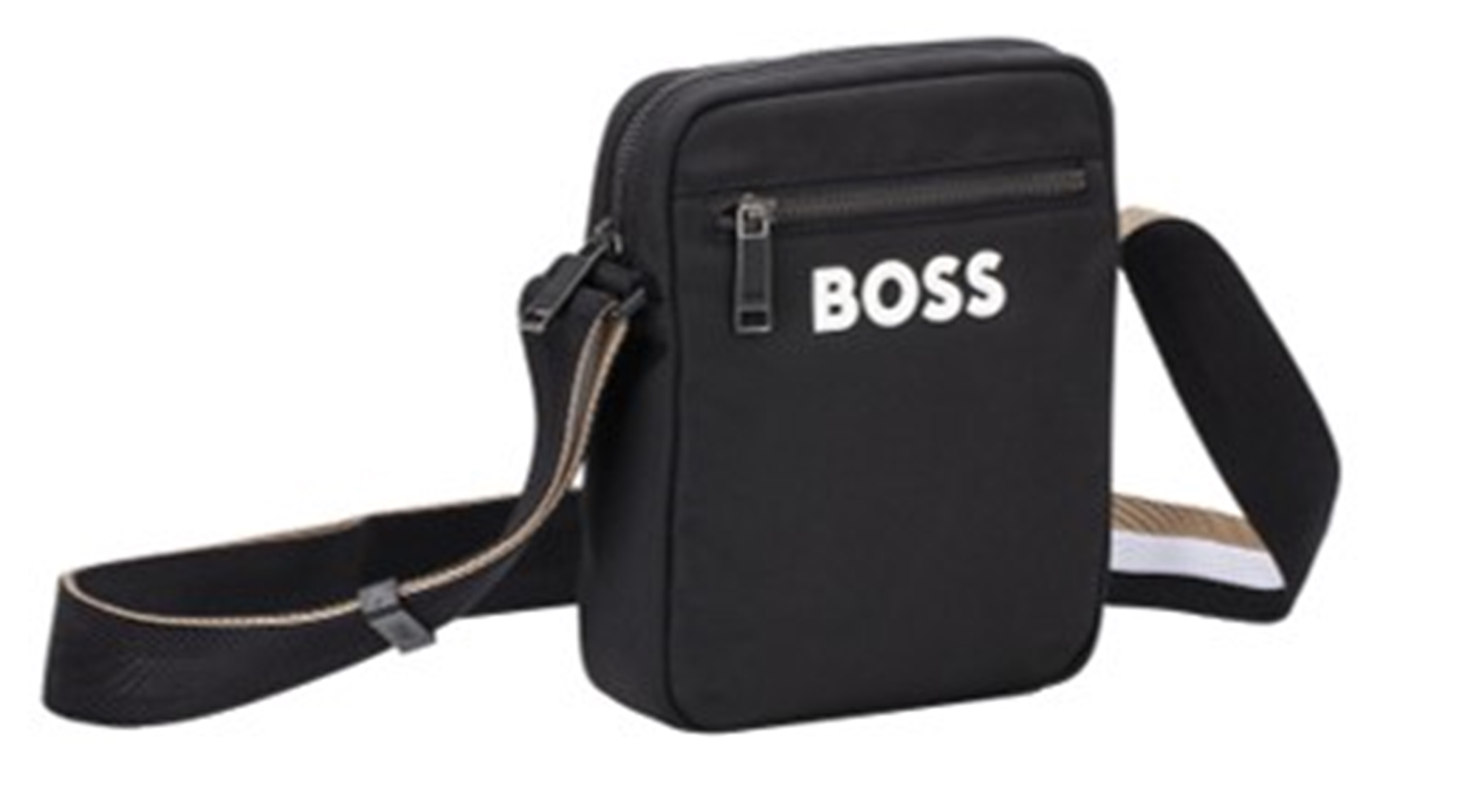Boss Umhängetasche Catch_3.0 M_NS Zip aus recyceltem Material mit Logo weiß schwarz 001