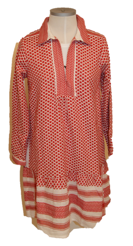CECILIE COPENHAGEN Kleid LYNETTED RESS mit 3/4 Ärmeln und Polokragen in Kufiaymuster rot 253 S