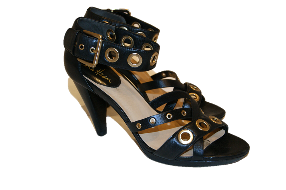 DIESER SCHUH VON COLE HAAN MIT DEM NAMEN AIR WHITNEY HISDNL WUNDERSCHÖNER OFFENER SCHUH MIT GOLDENEN OFFENEN NIETEN .
