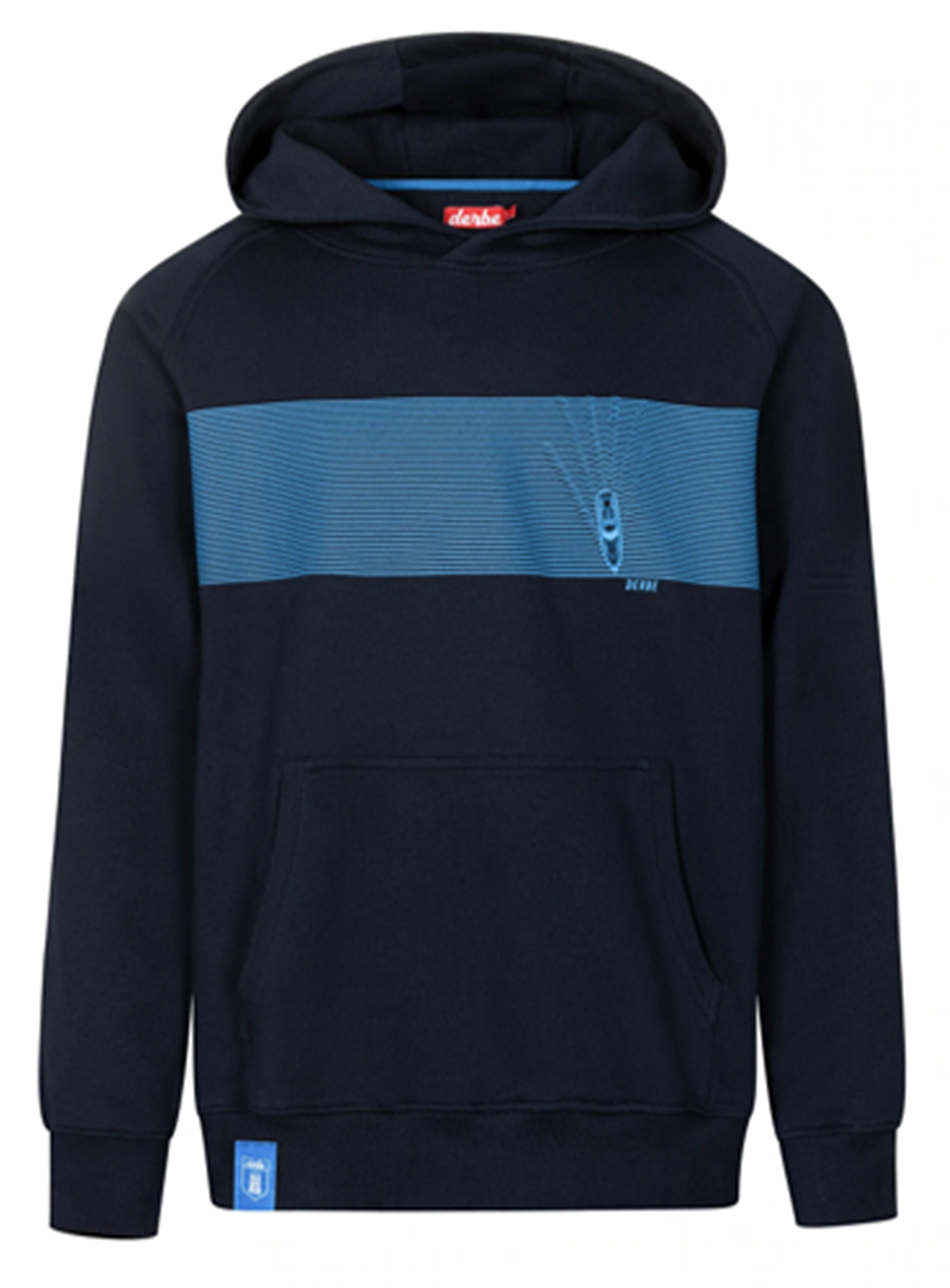 Für die Frühjahr-Sommer Kollektion 2022 hat Derbe einen Klassiker neu aufgelegt. Der dunkelblaue Hoody für Herren überzeugt mit einem raffinierten grafischen Print auf der Brust: Das kleine Schnellboot durchbricht die horizontalen Streifen und erzeugt dabei Wellenformen...