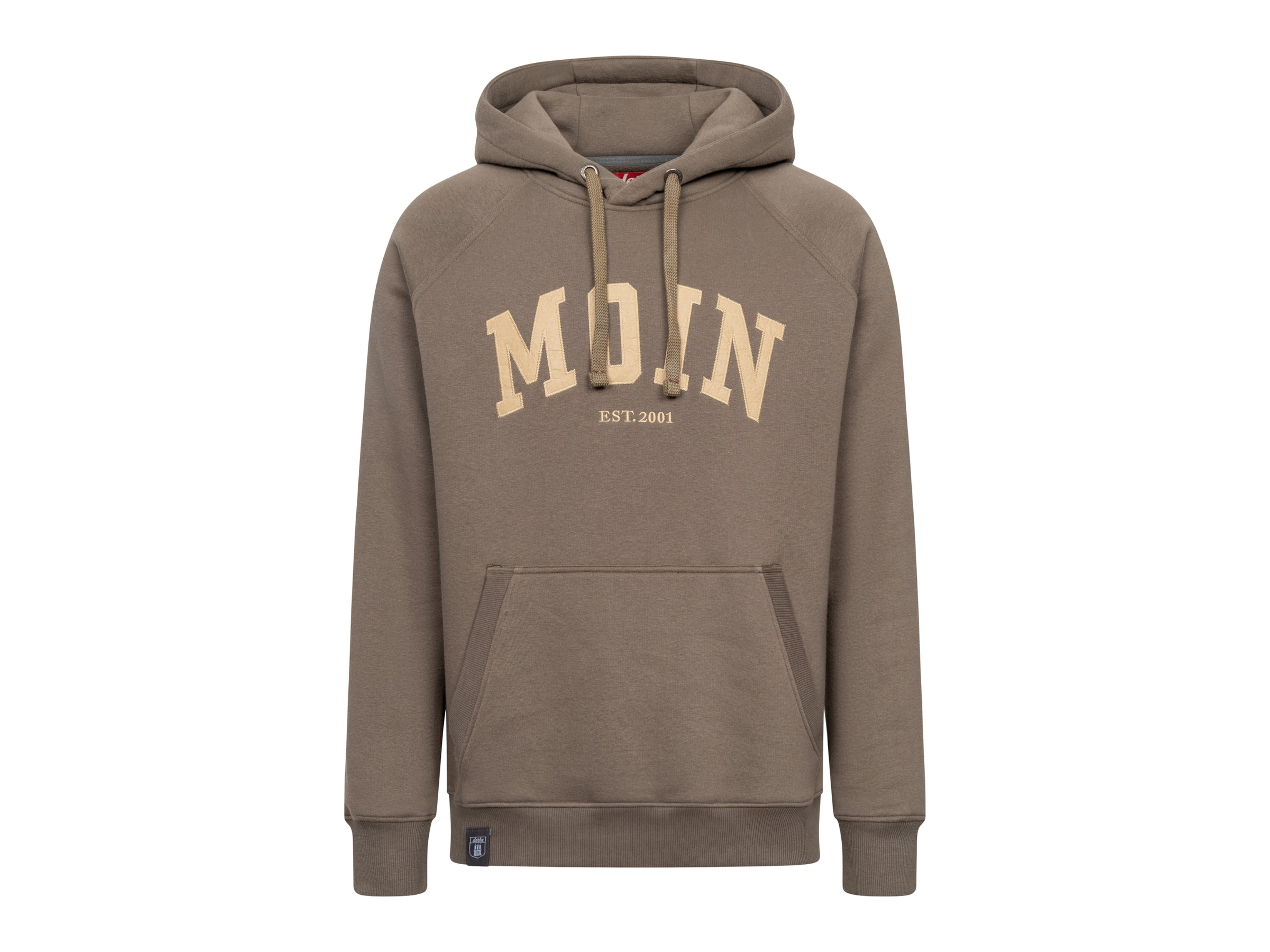 Brauner Kapuzenpullover von derbe für Herren mit Moin Schriftzug.