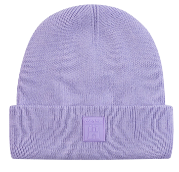 Coole, besonders weiche Mütze in Flieder mit Derbe-Logo.