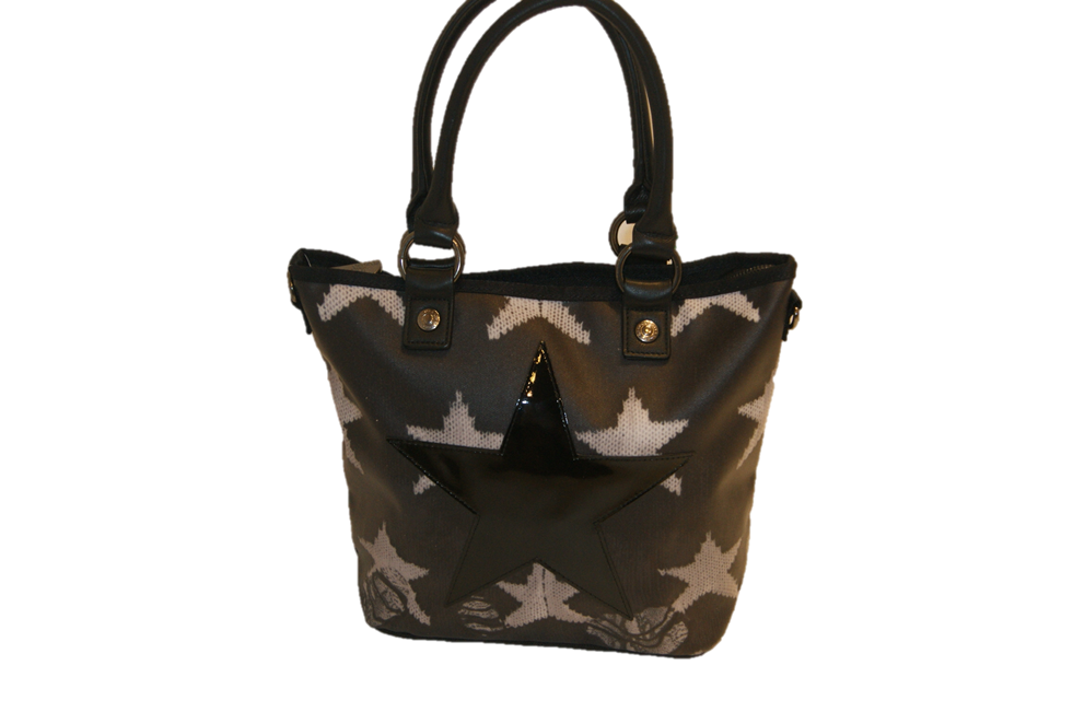 DETAILS : 2 HENKEL AUS LEDER MIT HENKELHÖHE CA 15 CM- SHOPPER MIT ALL OPVER PRINT- SCHULTERGURT AUS NYLON MIT EINER LÄNGE VON 60 CM - 120 CM-STAUBBEUTEL.