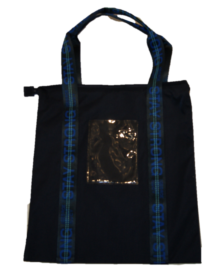 DETAILS : NYLON - ZWEI TRAGEHENKEL HENKELFALL 23 CM - HAUPTFACH VERSCHLUSS REISSVERSCHLUSS UND KARABINER HAKEN - STAY STRONG LOGO HENKEL UND ALS STREIFEN ÜBER DIE TASCHE -1 TRANSPARENTES FACH -TONALES GGL LOGO AUF DER VORDERSEITE .