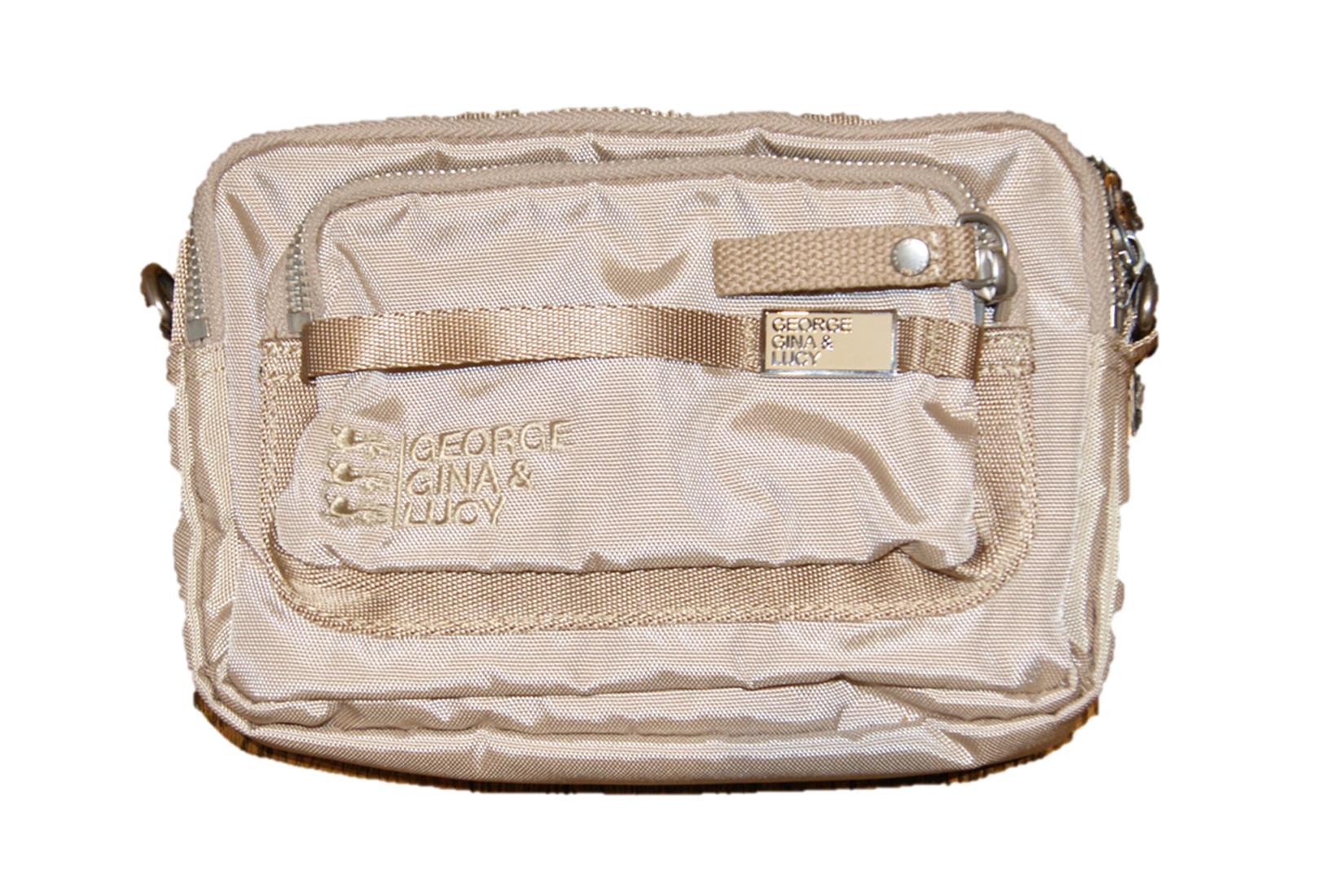 DETAILS :HAUPTFACH VERSCHLUSS REISSVERSCHLUSS - 2 WEITERE FÄCHER MIT REISSVERSCHLUSS - VERSTELLBARER SCHULTERGURT - GGL LOGO TONAL AUF FRONTSEITE .
