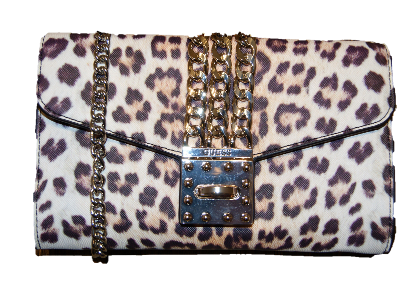 DIESE UMHÄNGETASCHE VON GUESS MIT DEM NAMEN PRISMA CLUTCH .WUNDERSCHÖNE TASCHE MIT KETTENBESATZ UND KETTENUMHÄNGEGURT .