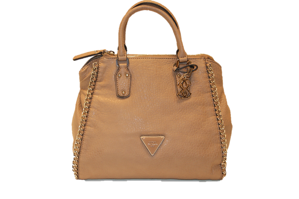 DIESE TASCHE VON GUESS MIT DEM NAMEN ASHBURY IND DER FARBE CAMEL EINE WUNDERSCHÖNE DAMEN HANDTASCHE .BESONDERS SCHÖN SIND DIE PROFILE AN DEN SEITEN MIT INTERLACED KETTEN.