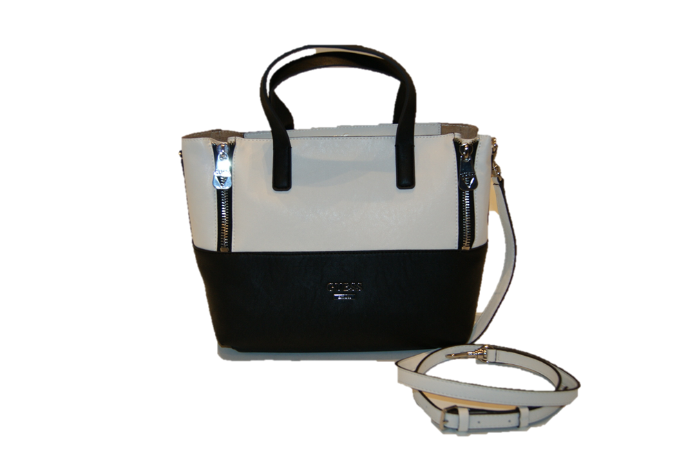 DIESE TASCHE VON GUESS MIT DEM NAMEN DOHENY BLACK MULTI SCHÖNE MITTLERE TASCHE IN MULTICOLOUR .MEHERE INNENFÄCHER .ABER BESONDERS SIND HIER DIE REISSVERSCHLÜSSE AN DEN SEITEN .
