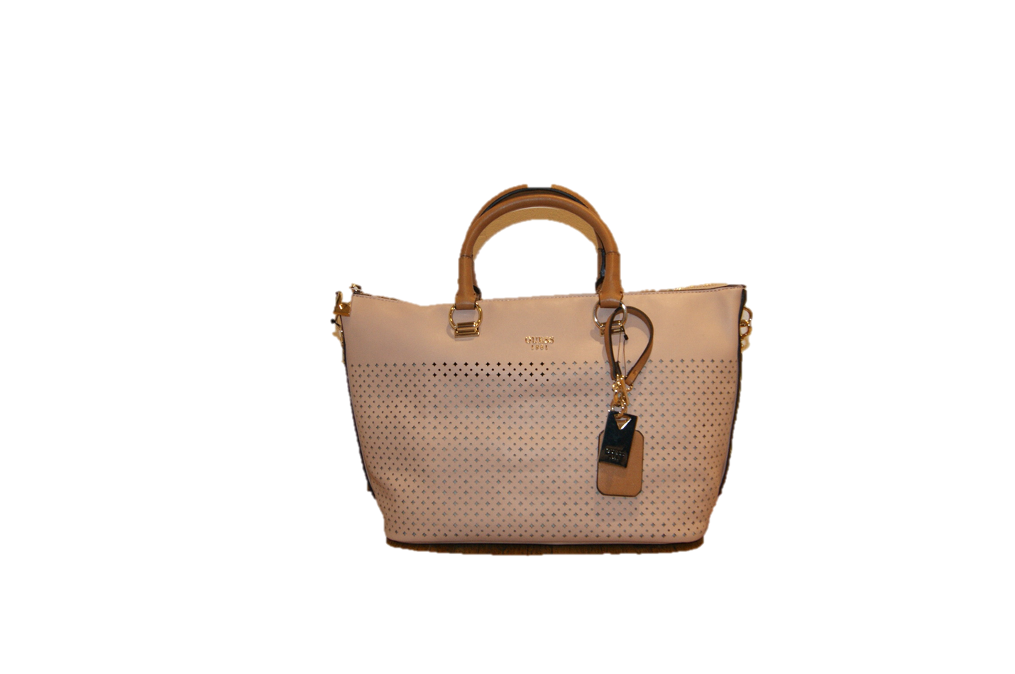 DIESE SHOPPER TASCHE VON GUESS MIT DEM NAMEN JULIANA. LÄSSIGE TASCHE FÜR DEN ALLTAG .EINE SCHULTERTASCHE UND HENKELTASCHE IN EINEM . DIE DURCHBROCHENE OPTIK SORGT FÜR DEN MODERNEN STYLE .