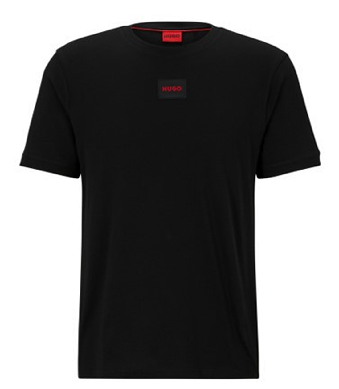 HUGO Baumwoll-T-Shirt Diragolino212 mit regulärer Passform und rotem Logo-Etikett schwarz 007