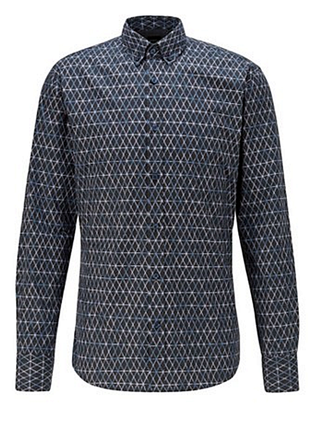 Legeres BOSS Hemd mit schmaler Passform für eine zeitgemäße Silhouette. Das markante Herren-Hemd mit Button-Down-Kragen und geraden Manschetten ist aus elastischer Baumwoll-Popeline gefertigt und mit einem Allover-Print versehen. Kontrastierendes Gewebe auf der Innenseite rundet den Style ab, der sich dank Garment-Waschung besonders soft anfühlt.