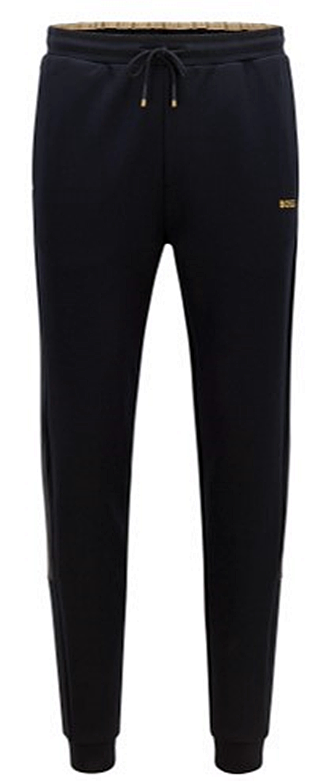 BOSS Jogginghose mit mittlerer Bundhöhe und Beinbündchen. Die gerade geschnittene Herren-Hose aus einem Baumwoll-Mix mit Interlock-Struktur ist mit einem kontrastfarbenen Logo und passenden Seitenstreifen versehen. Runden Sie den Athleisure-Look mit dem entsprechenden Sweatshirt mit Reißverschluss ab. Das Produkt ist exklusiv auf Online-Plattformen erhältlich, die direkt von HUGO BOSS betrieben werden.