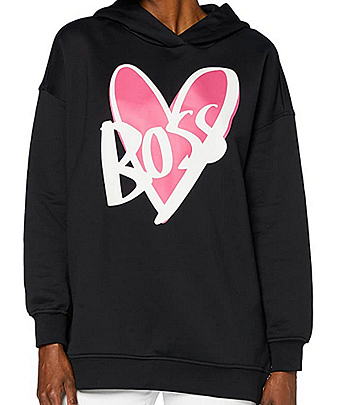 Setzen Sie ein Statement mit dem BOSS Kapuzen Sweatshirt von JUSTIN DEODORO das sich durch einen Herz -Print auszeichnet. Das komfortable Damen-Sweat mit gerader Passform und Kapuze ist aus Baumwoll-Jersey gefertigt. Durch die Garment-Waschung sorgt der charakteristische Style für ein weiches und angenehmes Tragegefühl.