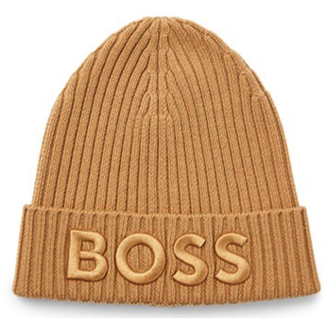 Hugo Boss Mütze ZARYAN aus gerippter Schurwolle mit Logo-Stickerei medium beige 260