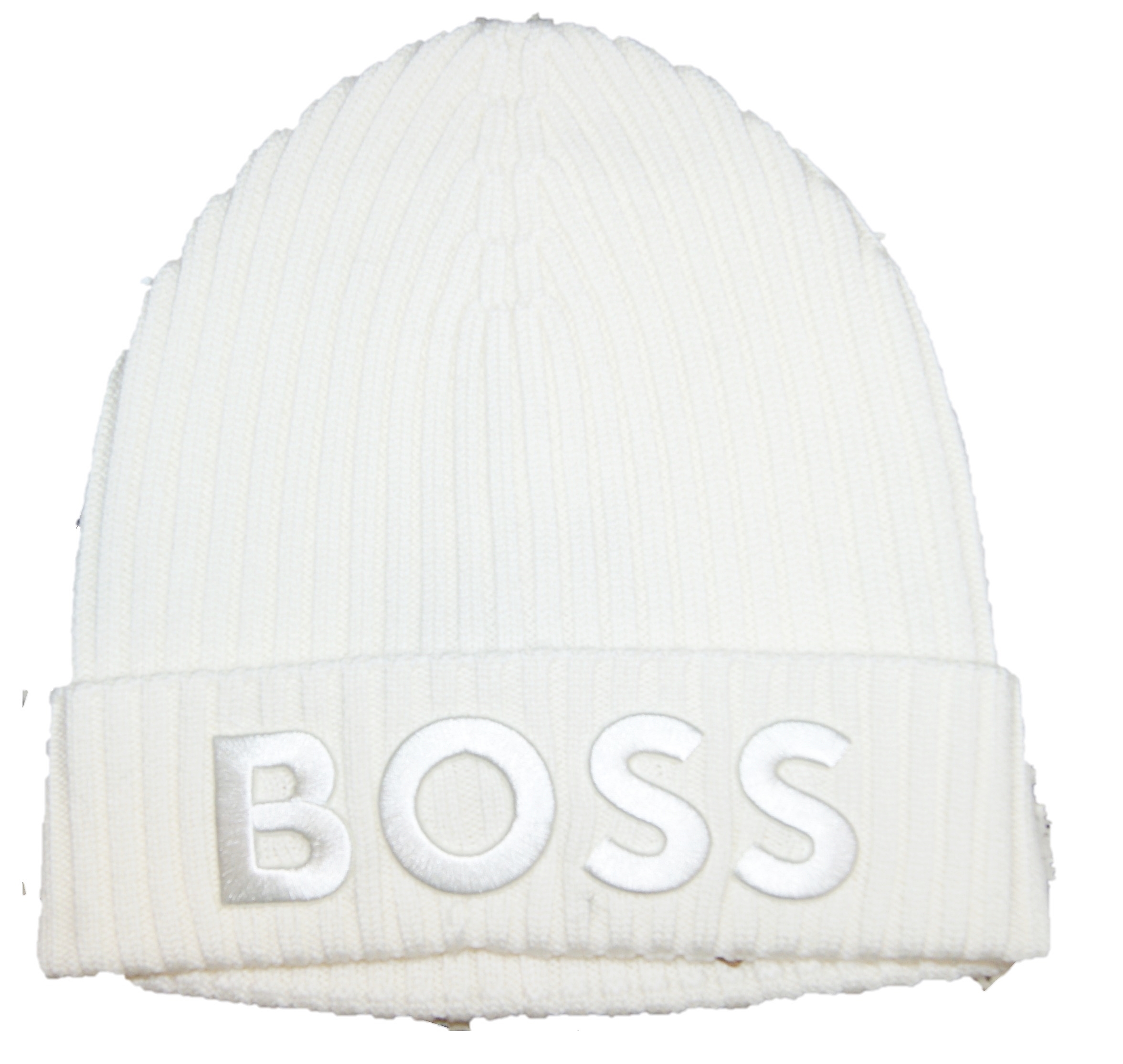 Hugo Boss Mütze ZARYAN aus gerippter Schurwolle mit Logo-Stickerei open white 118
