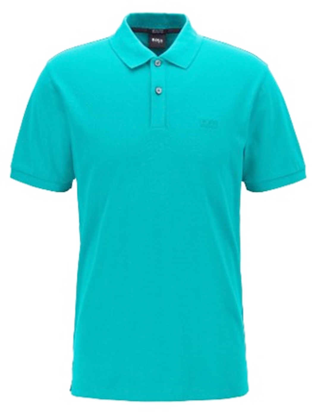 DETAILS : REGULAR FIT - FLACHSTRICKKRAGEN - 2 KNOPF LEISTE - KURZ ARM - SEITENSCHLITZE - BOSS LOGO TONAL AUF DER BRUST .