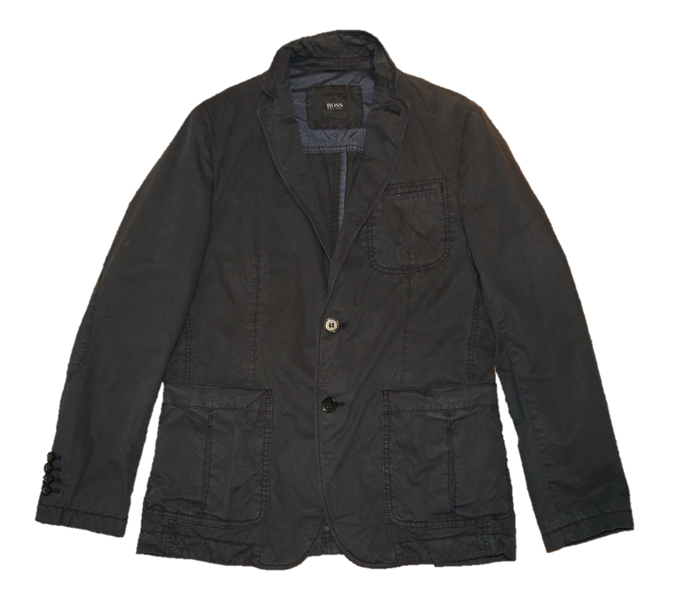 DIESES SACCO VON HUGO BOSS MIT DEM NAMEN MIRO-D.VORGEWASCHENSES 2 KNOPF UNI SACCO MIT AUFGESETZTEN TASCHEN UND TEILUNGS NÄHTEN AM RÜCKEN .