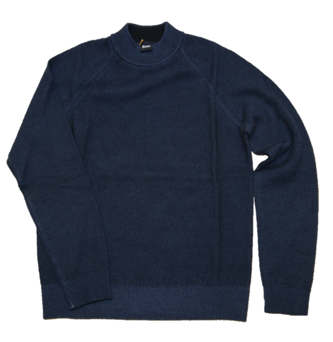 HUGO BOSS Schurwoll Pullover KARQUO mit Stehkragen Farbe dunkelblau 404 M