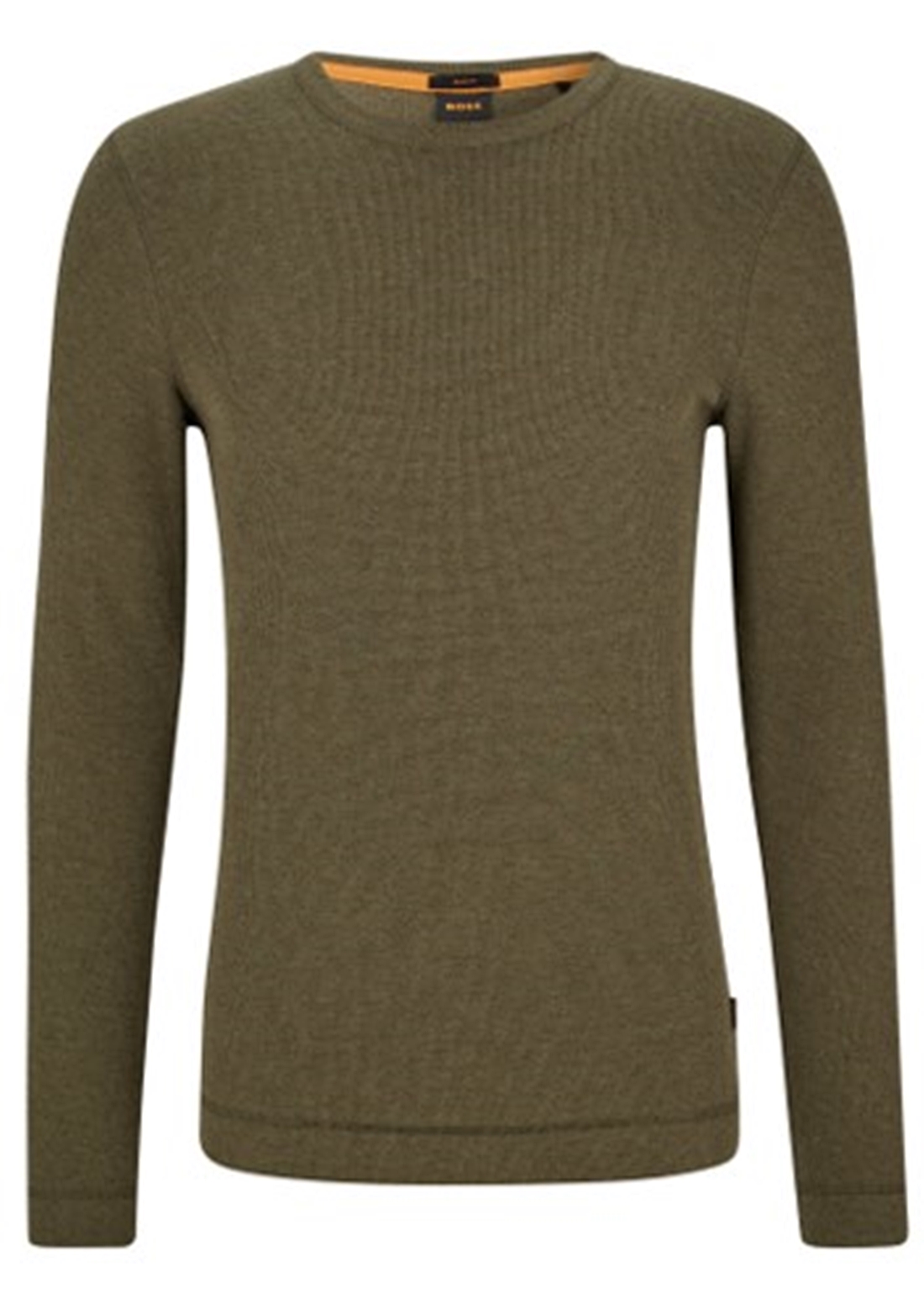 Hugo Boss Slim-Fit Longsleeve Tempest aus Baumwolle mit Waffelstruktur dunkelgrün 308
