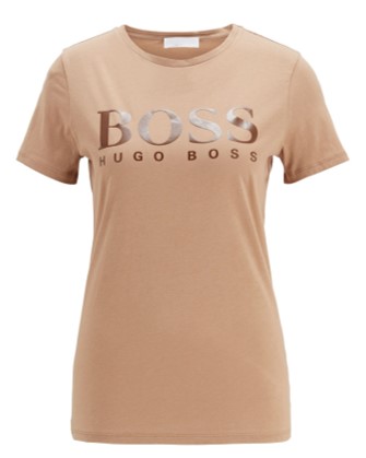 Gerade geschnittenes BOSS T-Shirt mit einem großen Logo, das mit einer markanten Print-Technik aufgebracht wird. Das Damen-Shirt aus Feinstrick-Jersey mit Rundhalsausschnitt ist aus reiner Bio-Baumwolle gefertigt und setzt ein souveränes Statement. Durch ein gewaschenes Finish fühlt sich der Stoff angenehm weich auf der Haut an