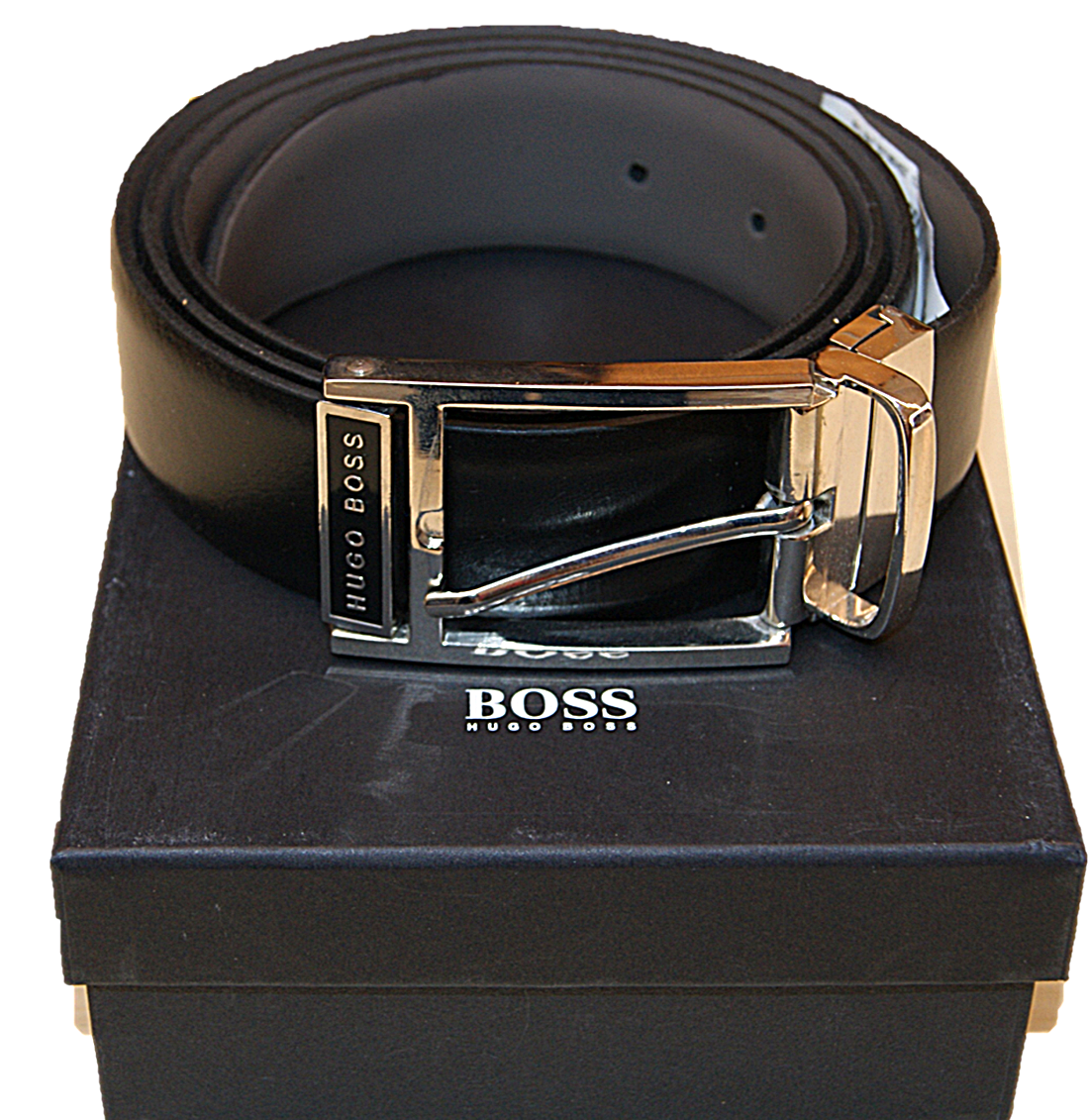 DIESER GÜRTEL VON HUGO BOSS MIT DEM NAMEN OGIRIO MODERNER WENDEGÜRTEL AUS LEDER MIT MODISCHER SCHLIESSE ZUM SELBER KÜRZEN. WENDEGÜRTEL 2 FARBIG SCHWARZ & GRAU