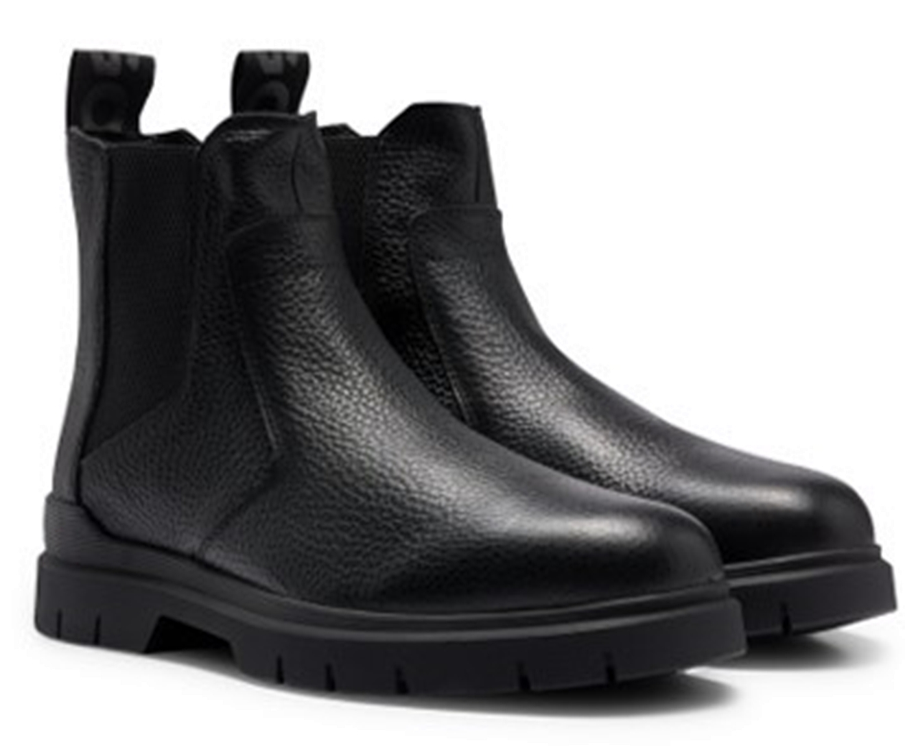 Zeitgemäße HUGO Chelsea Boots aus genarbtem Leder mit Logo-Tape an der Ferse.