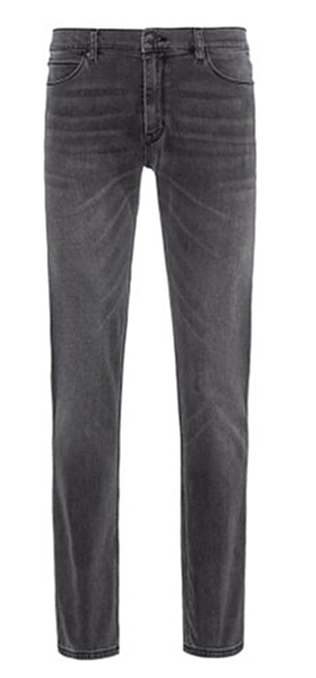 Urbane HUGO Jeans in Mittelgrau mit dezenten Used-Effekten für einen eingetragenen Look. Die schmal geschnittene Herren-Hose mit mittlerer Bundhöhe und geradem Beinverlauf ist aus bequemem Stretch-Denim gefertigt, der für langanhaltende Formbeständigkeit sorgt. Ein Etikett mit Reversed-Logo hinten am Bund verpasst dem Style die typische HUGO DNA.