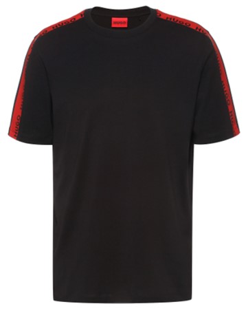 HUGO HERREN T-Shirt Derregio mit Logo Tapeband an den Ärmeln Schwarz 001