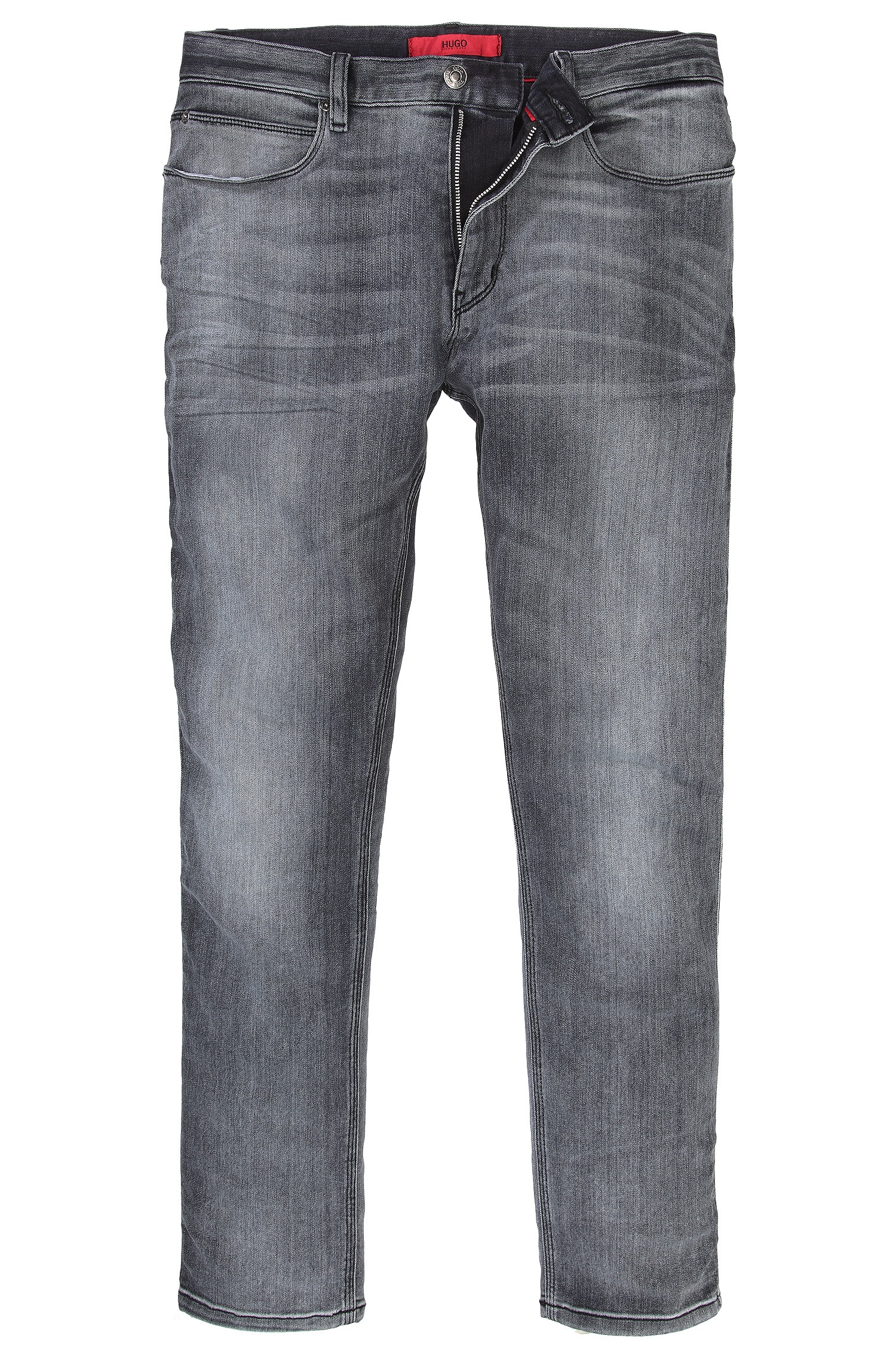 HUGO HOSE MIT DEM NAMEN HUGO 734 IST EINE MODERNE JEANS AUS EINER BAUMWOLLKOMPOSITION MIT ELASTHANANTEIL UND DEZENTEN WASCHUNGEN. DER TIEFE BUND WIRD MIT KNOPF UND REISSVERSCHLUSS GESCHLOSSEN.