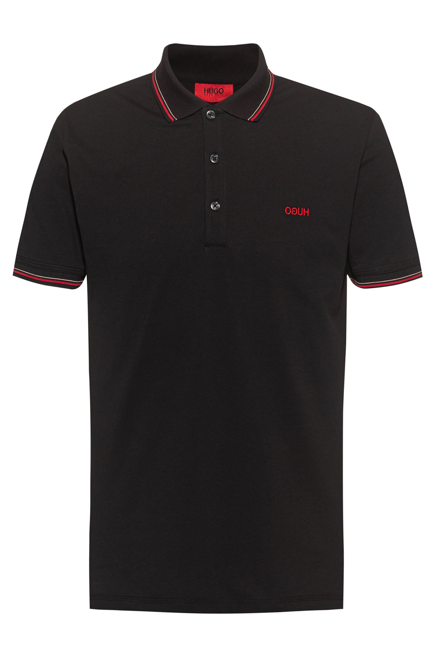 HUGO HUGO Poloshirt Dinoso202 aus Stretch-Baumwolle mit Streifen-Einfassung schwarz 001 XXL