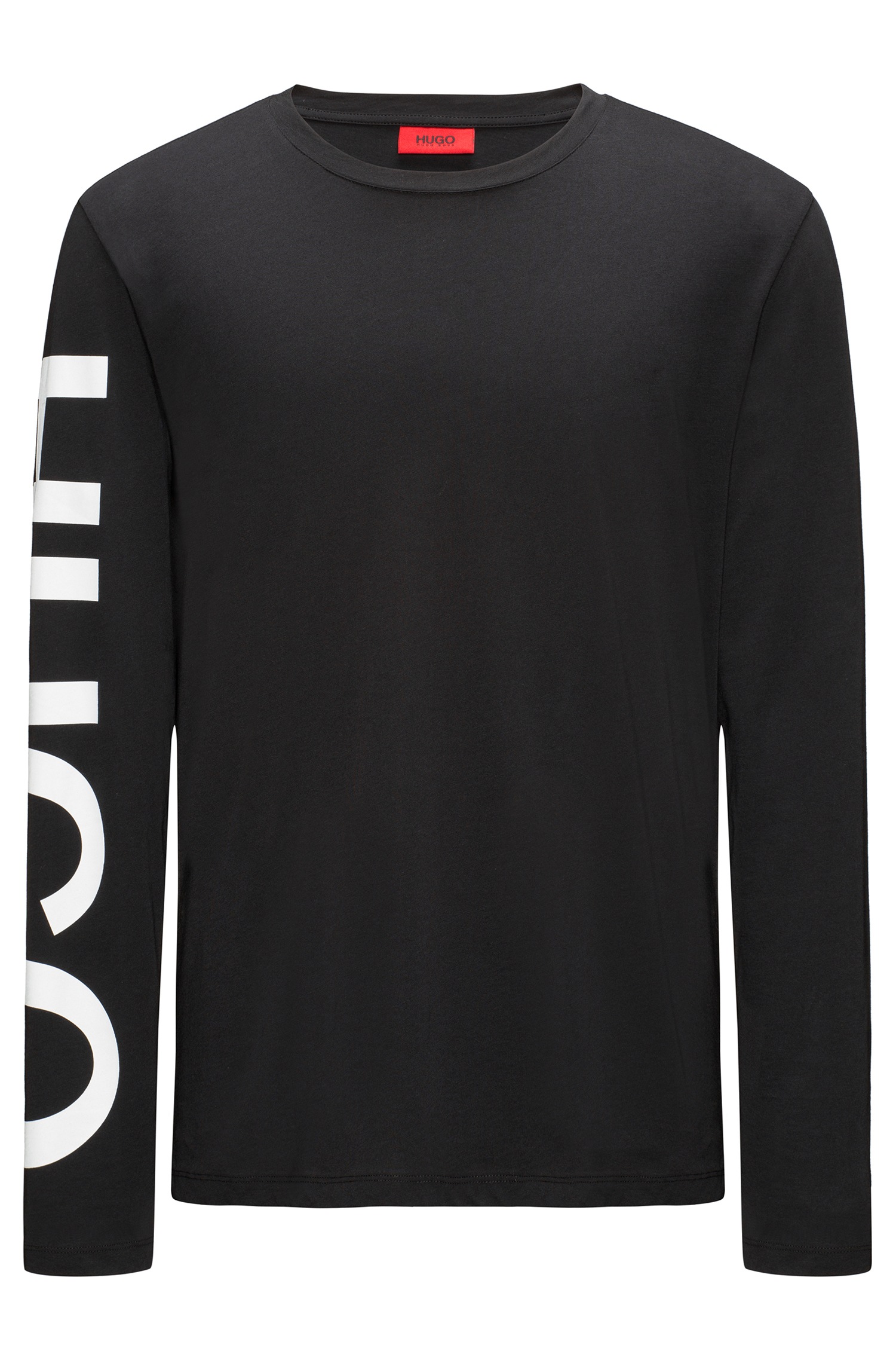 DIESER LOGO T SHIRT  VON HUGO MIT DEM NAMEN DEMEOS .SPORTLICHES OVERSIZED LONGSLEEVE T-SHIRT  AUS SOFTER BAUMWOLLE MIT HUGO LOGO VERTIKAL IN KONTRASTFARBE AUF DER RECHTEN ÄRMEL .