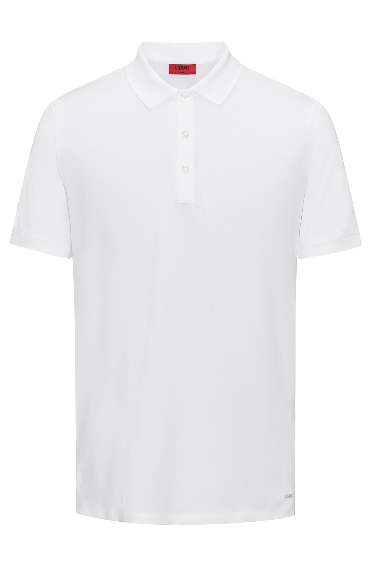 DIESES POLOSHIRT VON HUGO MIT DEM NAMEN DINOS . SPORTLICHES POLOSHIRT MIT 3 KNOPF LEISTE AUS EINEM WEISCHEM BAUMWOLL ELASTHAN GEWEBE.