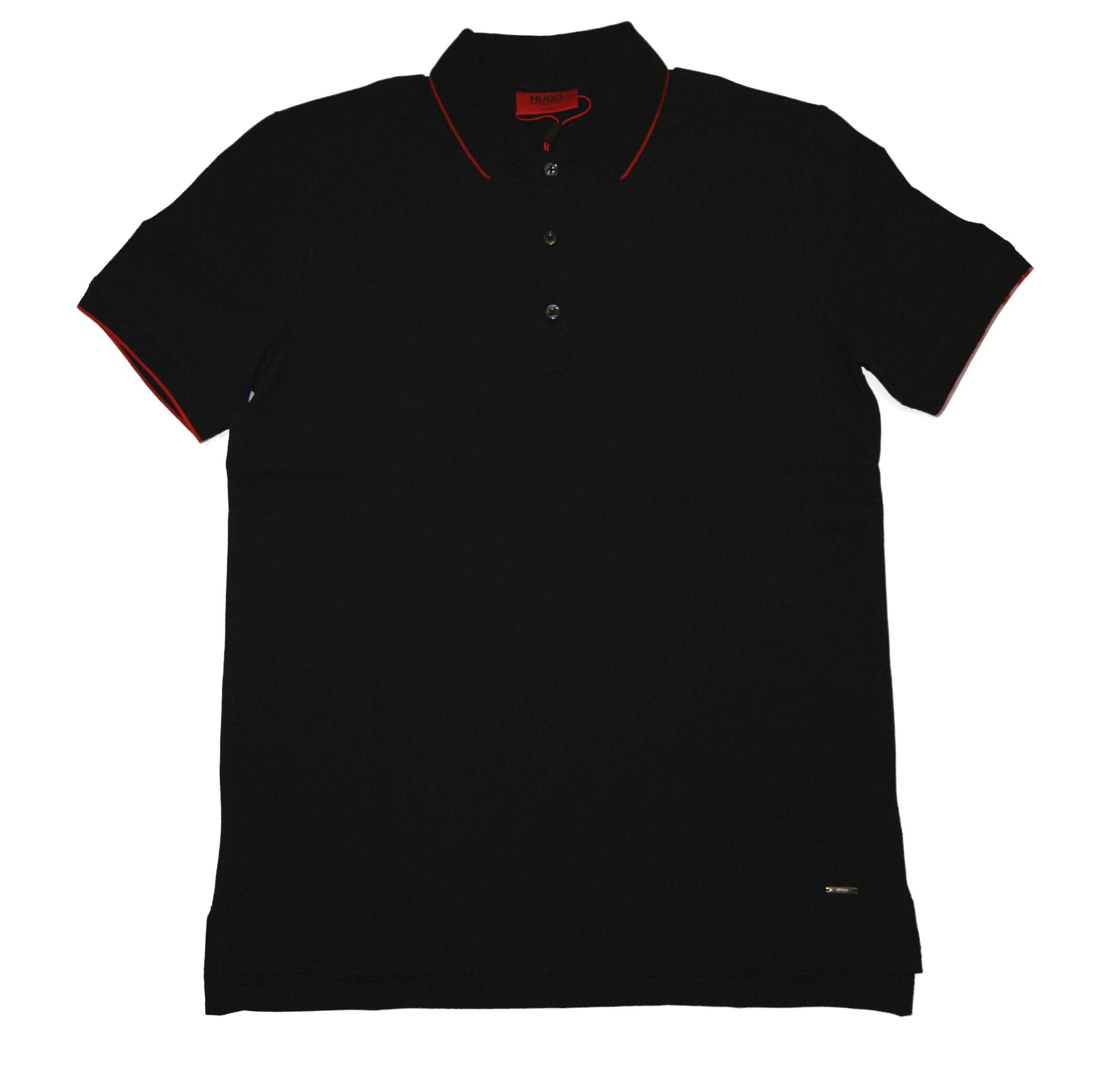 DETAILS : KNOPFLEISTE 3 KNOPF - KRAGEN UND ÄRMEL MIT KONTRASTFARBENEN STREIFEN - HUGO METALL LABEL ÜBER DEM BUND .