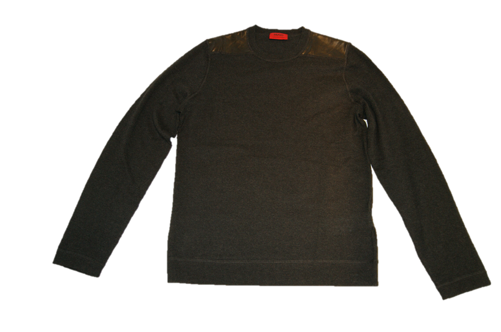 DIESER PULLOVER VON HUGO MIT DEM NAMEN SWEDLION NEU UND GUT DIESER PULLI MIT RUNDAUSSCHNITT UND KUNSTLDER BESATZ AN DEN SCHULTERN UND OBEREN RÜCKEN TEIL .