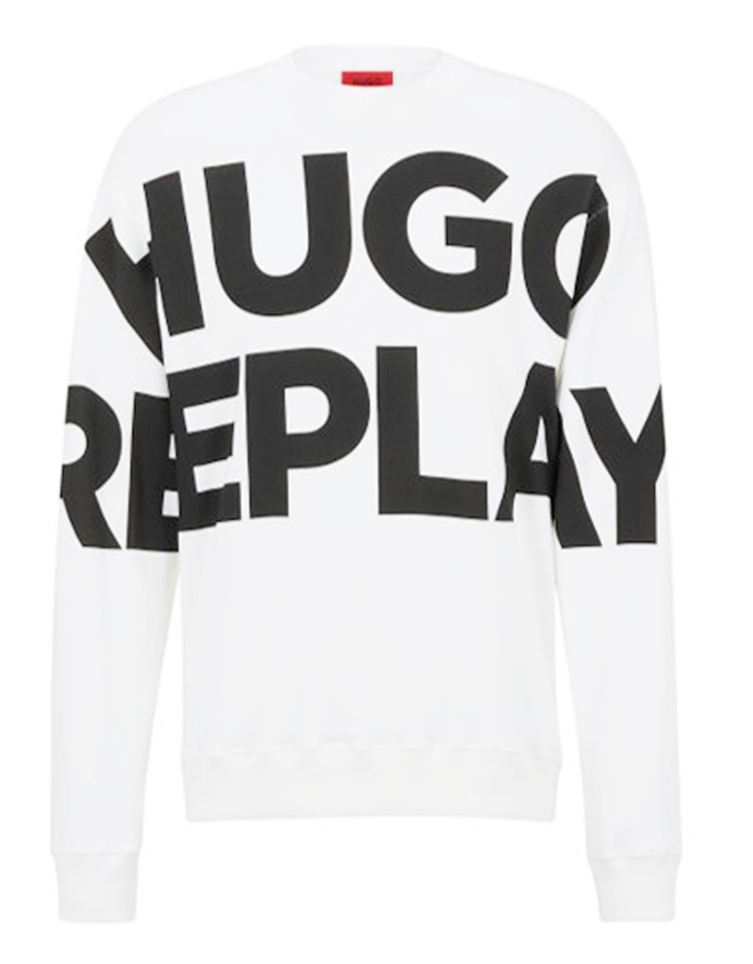 Legeres HUGO Sweatshirt mit Statement-Twist. Das markante Herren-Sweatshirt ist mit einem extra großen HUGO Logo im Design der neuen Saison versehen. Dank der geraden Passform eignet sich der Style ideal für Layering-Looks. Teil der HUGO x Replay Kollektion, die unsere charakteristischen Marken-Styles mit Attitüde neu interpretiert und beweist, dass es nur eine Regel gibt – nämlich die, dass es keine Regeln gibt. Für unsere RESPONSIBLE Produkte verwenden wir immer mindestens 60 % nachhaltigere Rohmaterialien. Dieses Kleidungsstück ist zu mindestens 60 % aus zertifizierter Bio-Baumwolle gefertigt. Bio-Baumwolle wird nur mit natürlich vorkommenden Substanzen und ohne gentechnisch verändertes Saatgut angebaut. In der biologischen Landwirtschaft werden zur Schädlings- und Krankheitsbekämpfung anstelle von Chemikalien natürliche Maßnahmen, wie Wechselwirtschaft und Kompostieren, eingesetzt.