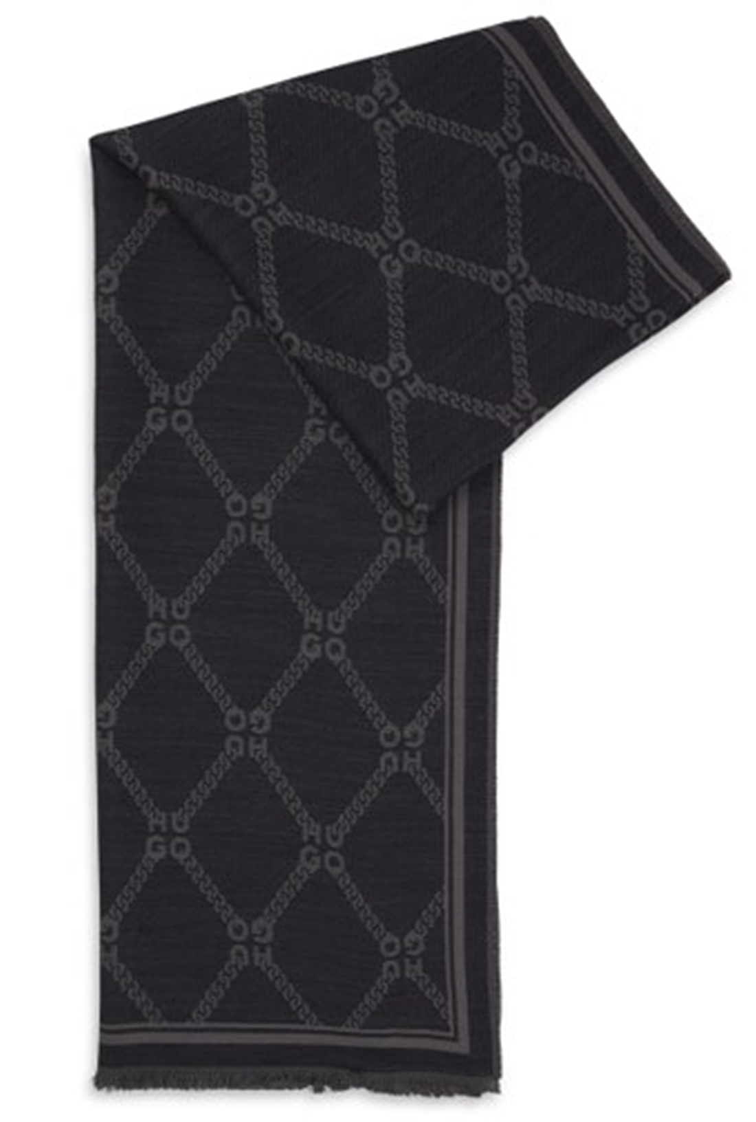 Hugo Schal Cristyn_50*200 aus Woll-Mix mit Stack-Logo-Motiv schwarz 001