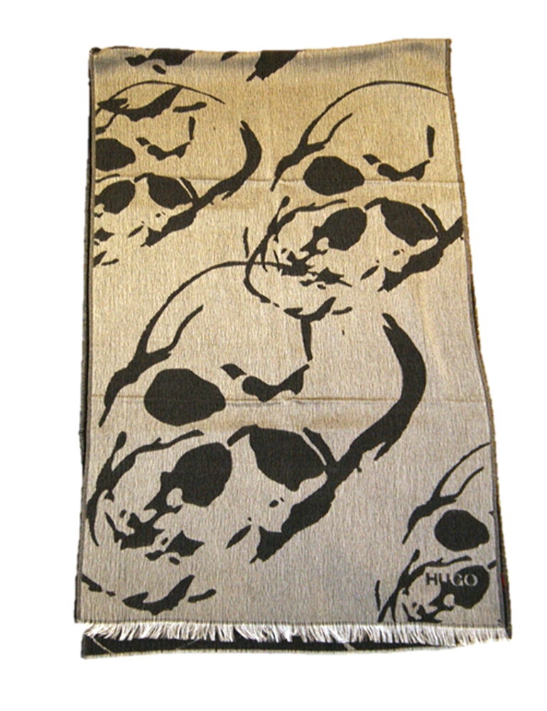 DIESER SCHAL VON HUGO MIT DEM NAMEN MEN-Z 443 LEGERER SCHAL MIT TOTENKOPFMOTIVEN IN UNTERSCHIEDLICHEN DARSTELLUNGEN .SEHR ANGENEHM ZU TRAGEN DURCH SEINE SCHURWOLL MODAL MIX QUALITÄT.