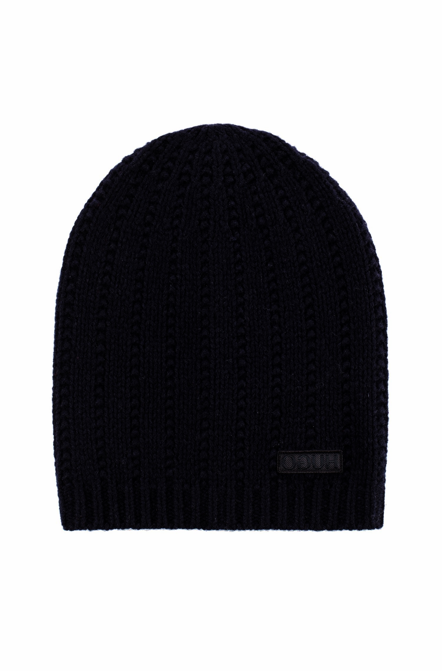 HUGO Schurwollmütze XAFF 1mit Hugo Reversed-Logo Farbe schwarz 001