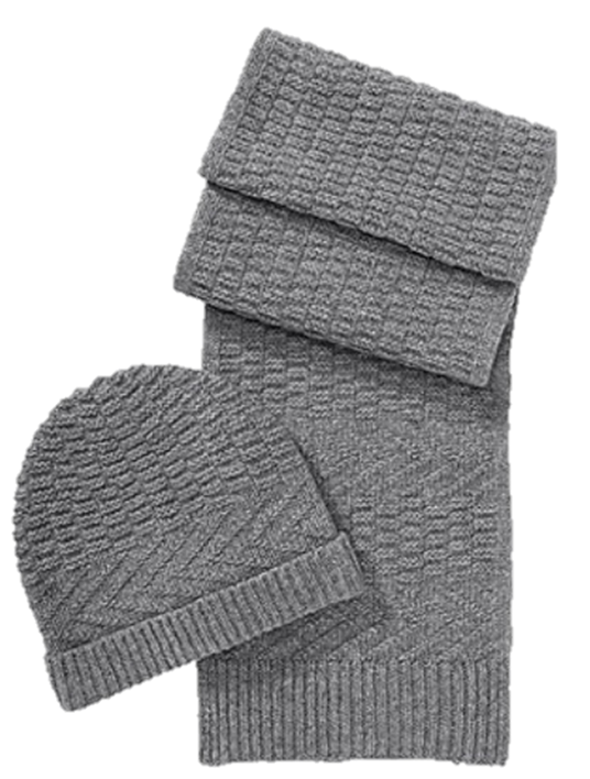 DIESES SET VON HUGO MIT DEM NAMEN CHRISTMAS SET .WIE JEDES JAHR GIBT ES AUCH JETZT WIEDER EIN UNIFARBENES SET AUS SCHAL UND MÜTZE AUS SCHURWOLLE IN EINEM NEUEN STRICK DESSIN .