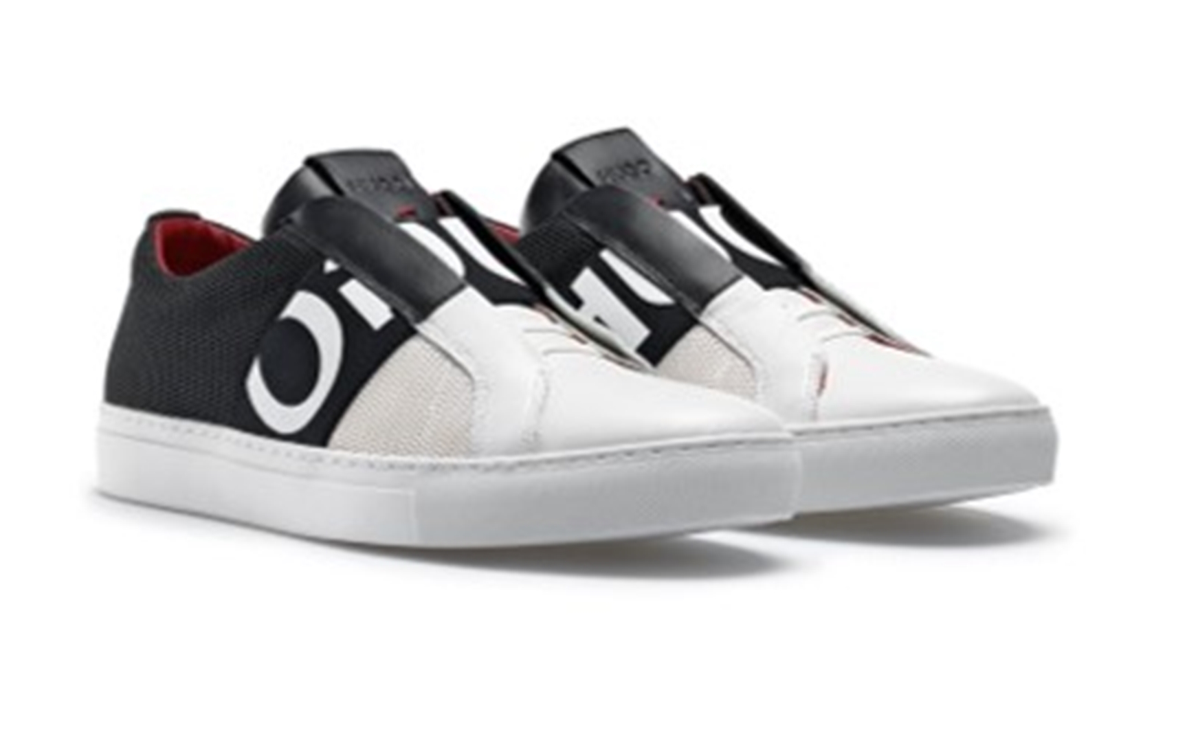 DETAILS : SLIP ON FUNKTION - MIT INNENFUTTER - ELASTISCHER RIEMEN MIT HUGO REVERSED LOGO - SCHUHZUNGE MIT HUGO LOGO -VERSE FARBLICH ANGESETZT .