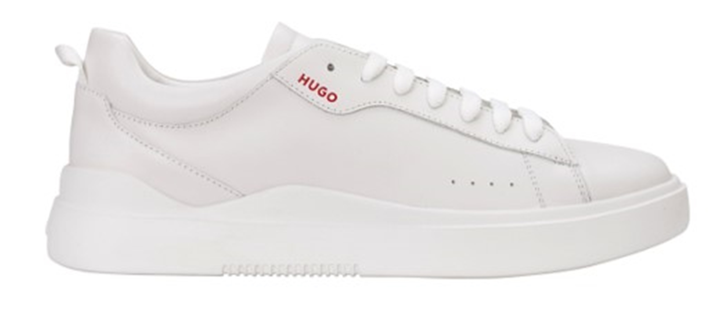 Zeitgemäße HUGO Sneakers aus Glattleder mit Cupsohle und Logo im Signature-Rot an der Seite.