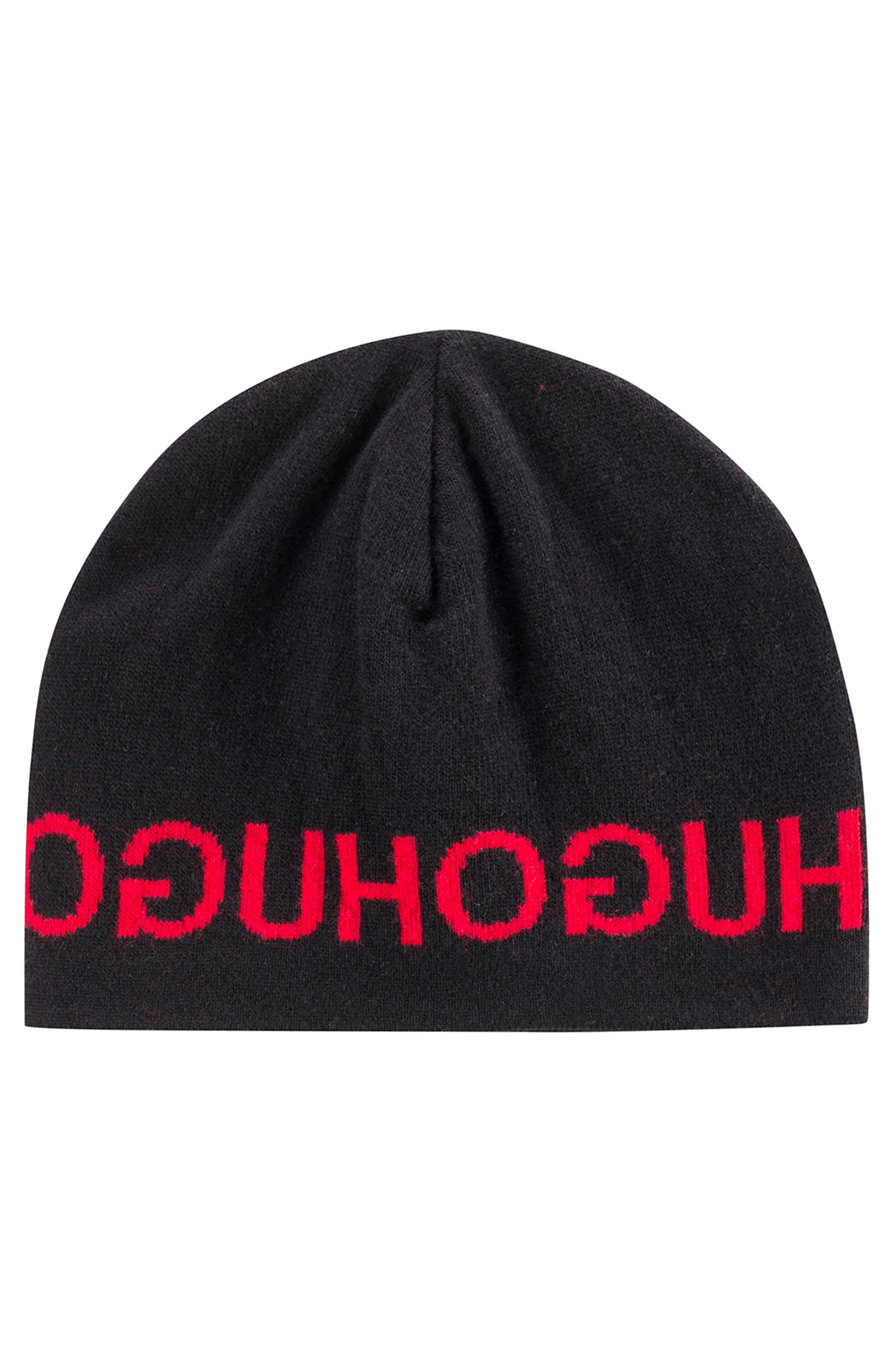 HUGO Strickmütze Men-X 472 mit sich wiederholendem Reversed-Logo schwarz 001
