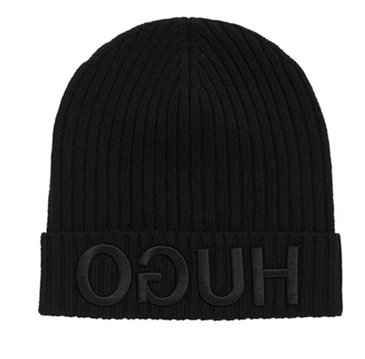 HUGO Strickmütze MEN-X 537 aus Wolle mit Logo-Stickerei Farbe schwarz 001