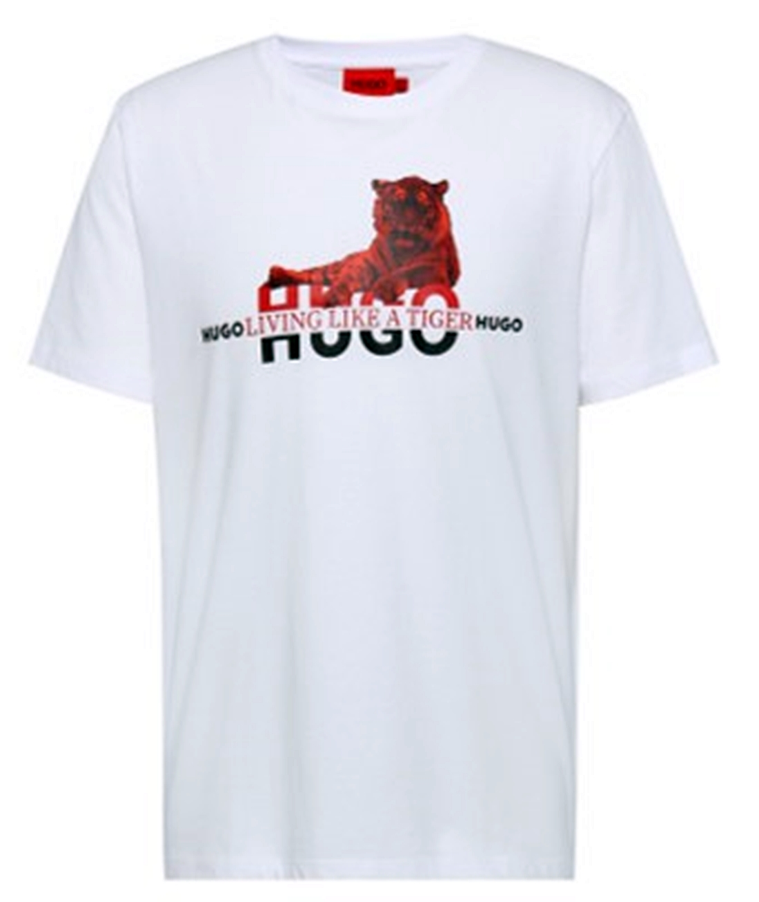 Hugo T-Shirt Datertiger aus Bio-Baumwolle mit Logo und Tiger-Artwork weiß 100