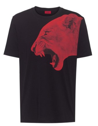 Zeitgemäßes HUGO T-Shirt aus Baumwoll-Jersey. Das gerade geschnittene Herren-Shirt ist mit einem markanten Artwork bedruckt. Verpasse deinem HUGO Tailoring mit diesem Rundhals-Shirt einen kreativen Touch