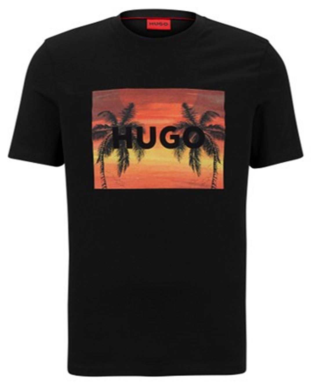 Hugo T-Shirt Dulive_U232 aus Baumwoll-Jersey mit Palmen-Artwork und Logo schwarz 001