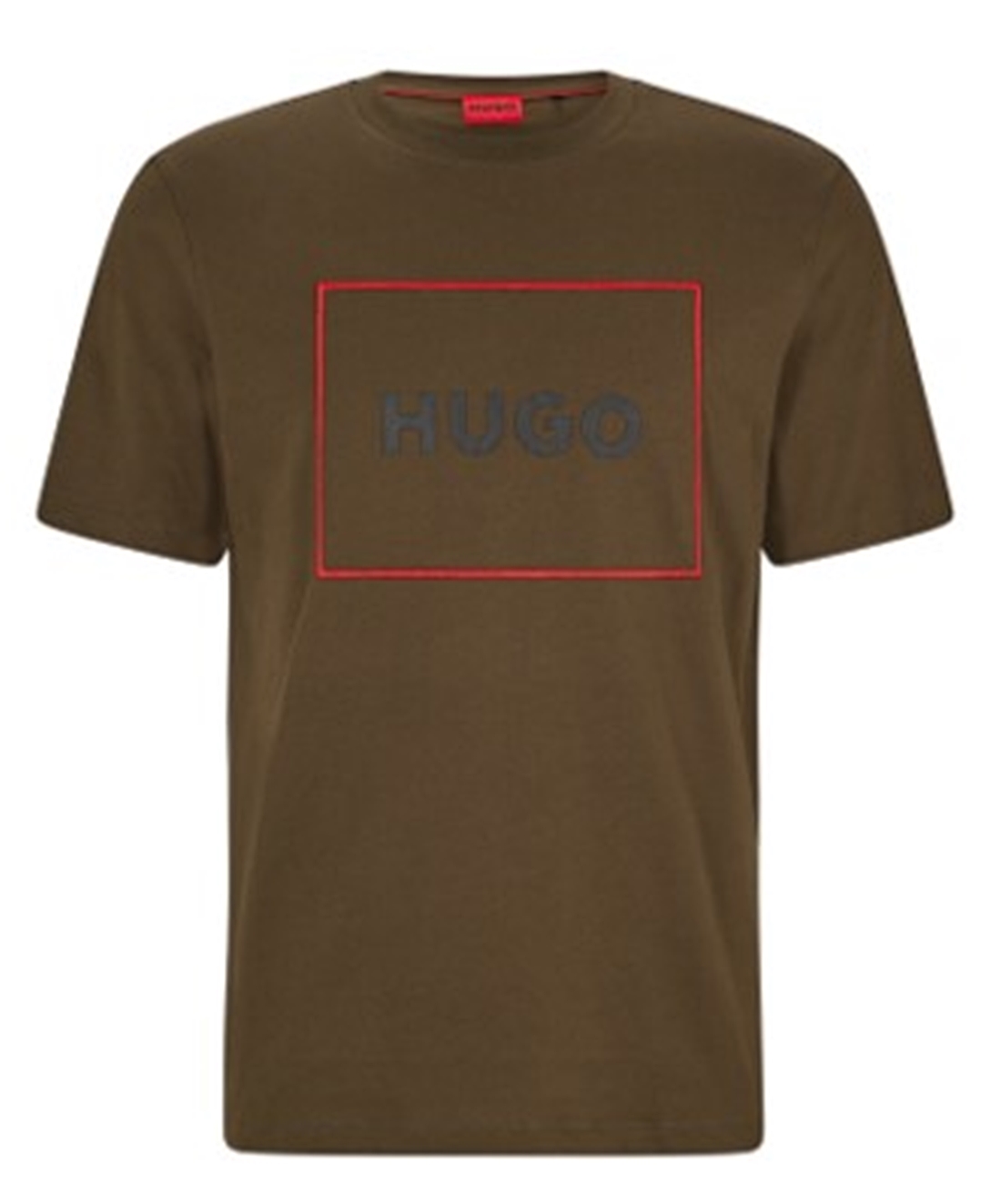 Hugo T-Shirt Dumex aus Bio-Baumwolle mit rot eingerahmtem Logo oliv 303